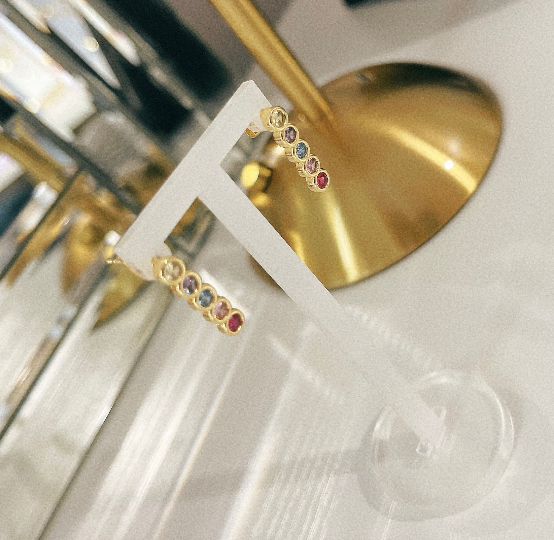 Rainbow rhinestone Gold Plated geométric Stud Earrings
